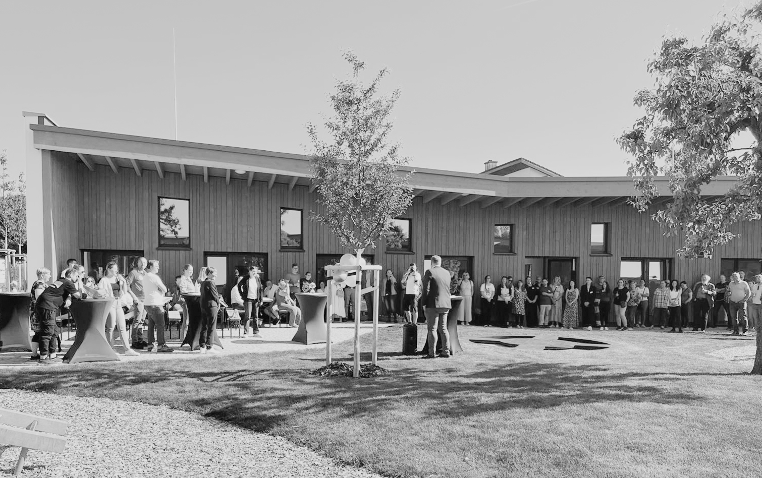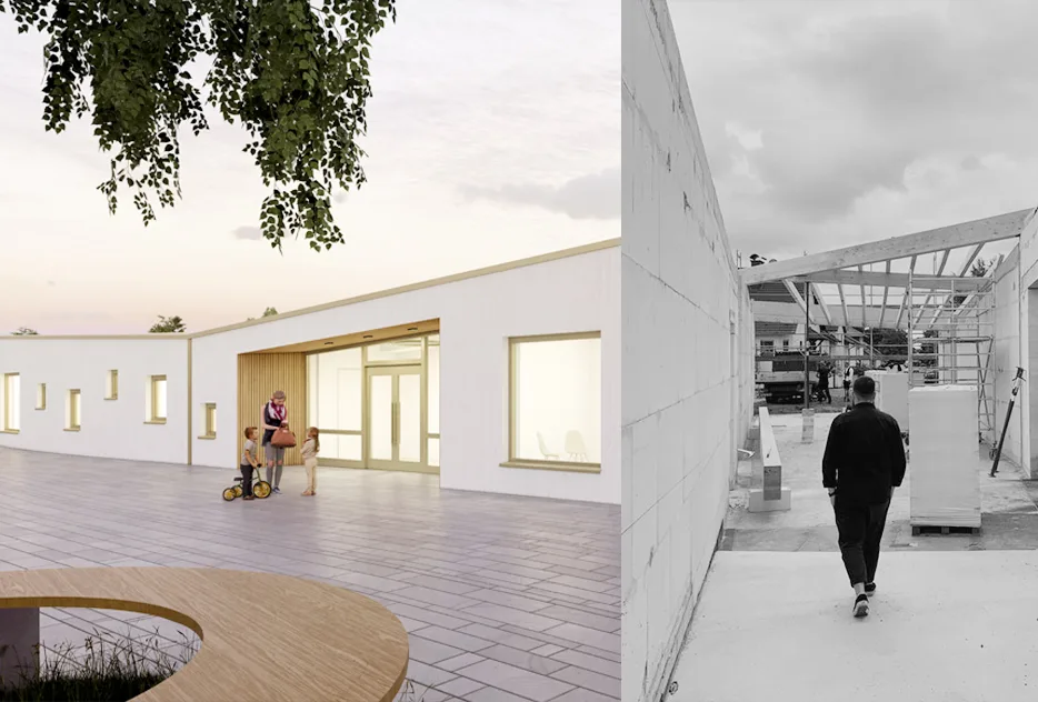 Von der neuen Einrichtung profitiert auch das Quartier. Auf dem Vorplatz erinnert eine öffentliche Wasserpumpe an die frühere Nutzung des Geländes als Brunnenplatz und macht die Geschichte des Ortes wieder erlebbar. Nachhaltige Baustoffe, eine Luft-Wärmepumpe sowie eine Photovoltaikanlage mit Batteriespeicher sorgen zudem für eine umweltfreundliche und energieeffiziente Versorgung.