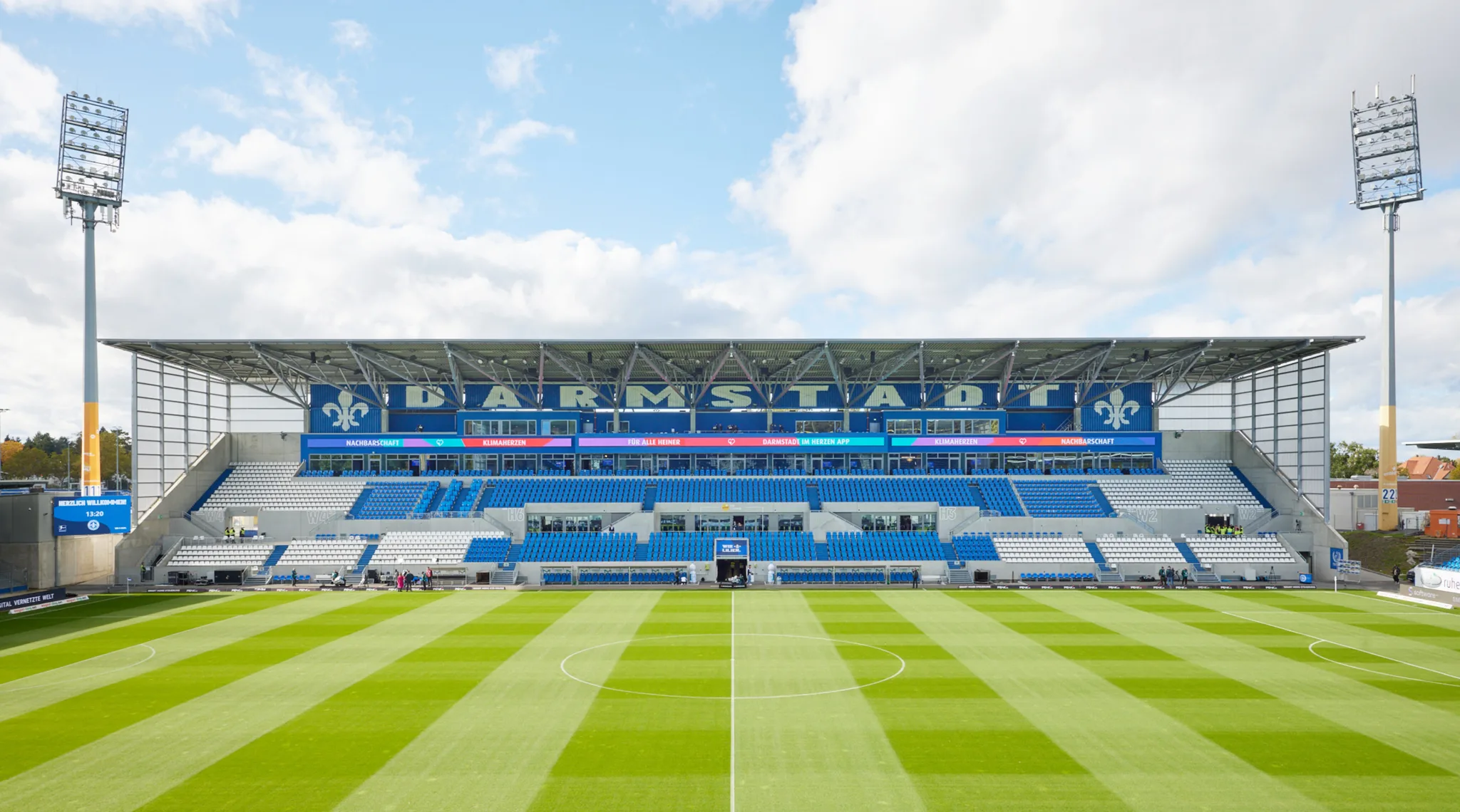 In Generalplanung wurde das Stadion am Böllenfalltor, Heimspielstätte des SV Darmstadt 98, grundlegend neu gestaltet und weiterentwickelt. Ziel war es, die Infrastruktur zu verbessern, die Zuschauerkapazität zu erweitern und ein zeitgemäßes Stadionerlebnis zu schaffen. Das fast 18.000 Zuschauer fassende Stadion wurde umfassend modernisiert: Neue Überdachungen, erweiterte Tribünenbereiche und eine optimierte Verkehrsführung verbessern heute deutlich den Komfort für Fans und Besucherinnen. Ein neu gestalteter Eingangsplatz fungiert als öffentlicher Treffpunkt und verankert das Stadion stärker im städtischen Raum. Neben der infrastrukturellen Aufwertung wurde die Kapazität gezielt erhöht und neue Werbeflächen integriert. Eine moderne Trainingsanlage sowie ein Verwaltungsgebäude ergänzen das Ensemble und unterstützen die organisatorischen Abläufe des Vereins. So entstand ein funktionales, zukunftsfähiges Stadion – als Heimat für Verein, Fans und Stadtgesellschaft.