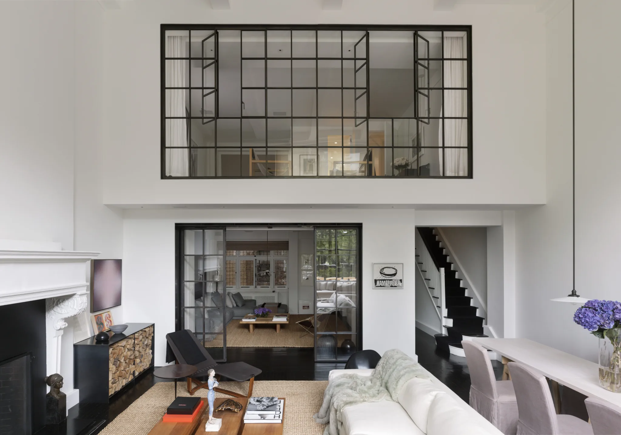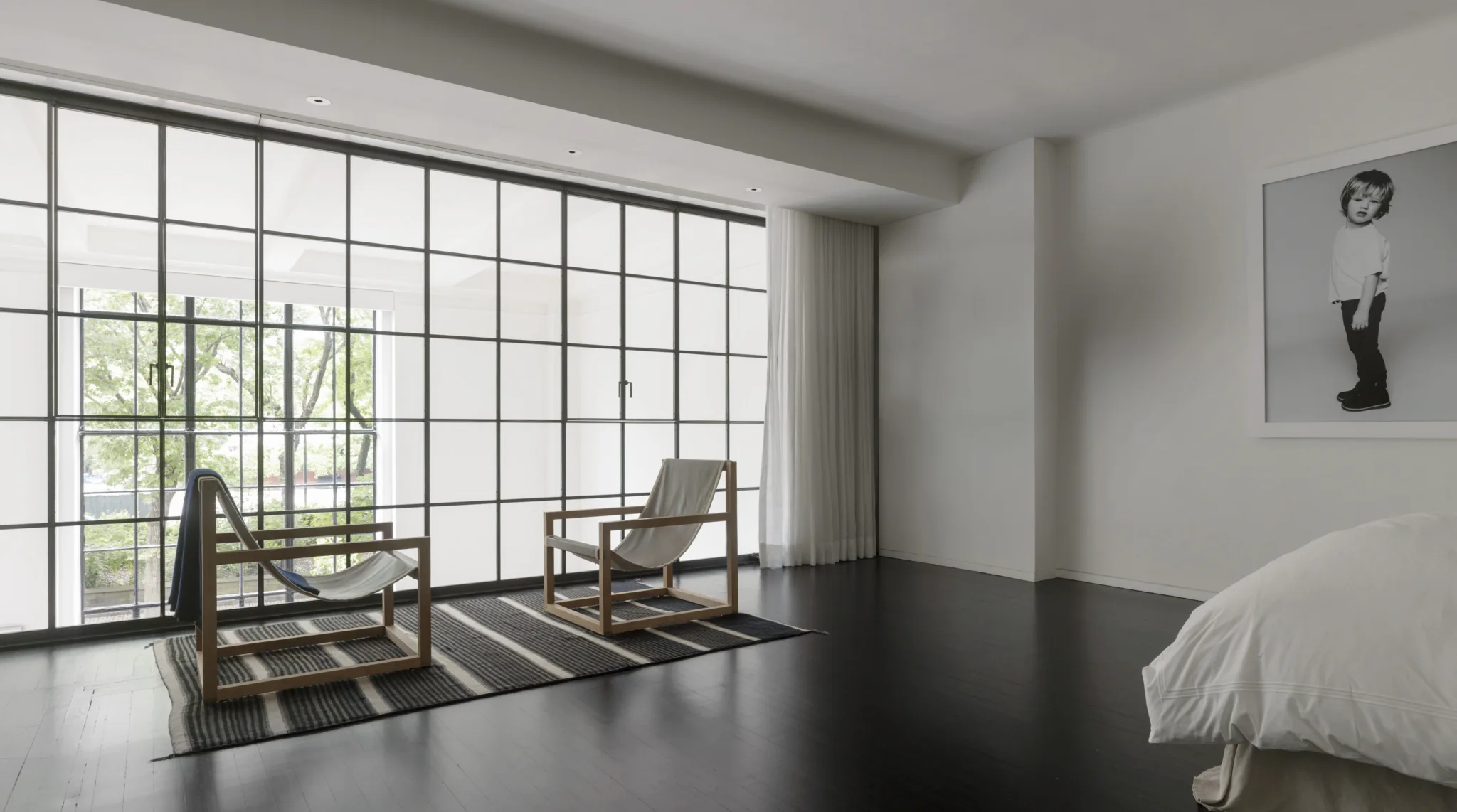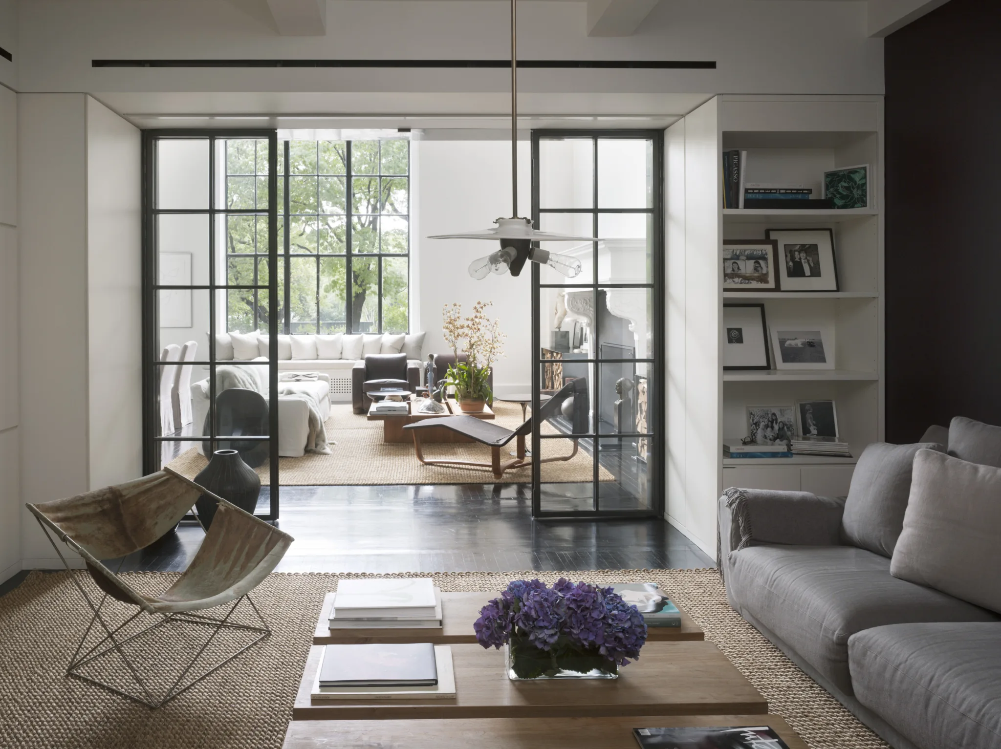 Originally a duplex, this Upper West Side apartment was expanded when the client acquired the adjacent unit. 1100 Architect combined the two spaces into a cohesive whole through careful detailing and a unified material palette. A new breakfast area was added to the kitchen, creating a transition zone that opens views across the apartment. Polished materials like concrete, marble, and white lacquer are balanced by softer elements such as bleached wood and linen. The interior emits a modern warmth, with a focus on natural light and spatial flow.