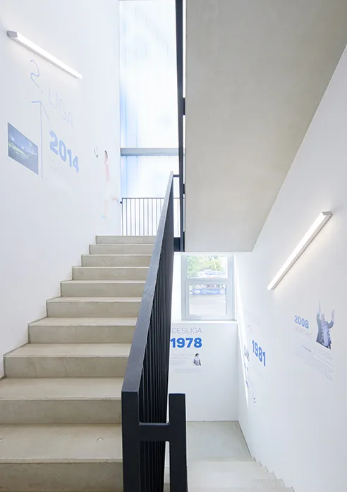 Even in earlier projects, her broad range—from technical detail to conceptual studies and procedures—was evident. She was primarily responsible for the planning of the administration building for SV Darmstadt 98 as well as the heritage-compliant renovation of the “Böllenfalltorhalle.” She also led the design-and-build process for the Preußen Münster stadium. Her strength lies in translating complex requirements into clear, viable design solutions. For Katharina, architecture emerges where functional, design, and technical aspects are not only coordinated but interlock precisely—with the aim of creating holistic and future-proof buildings.